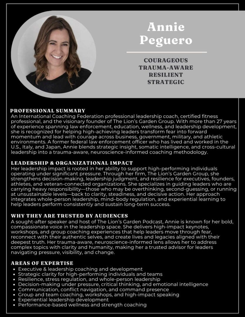 Our collaborative model blends The Lion’s Garden’s expertise in neuroscience-informed, somatic, and trauma-aware coaching with C2H Transform’s strengths in strategic leadership development, organizational effectiveness, and systems-level transformation. This partnership equips leaders across business, government, military, and community sectors with the tools to grow from stuck to sustainable success—without compromising their values or their well-being.
