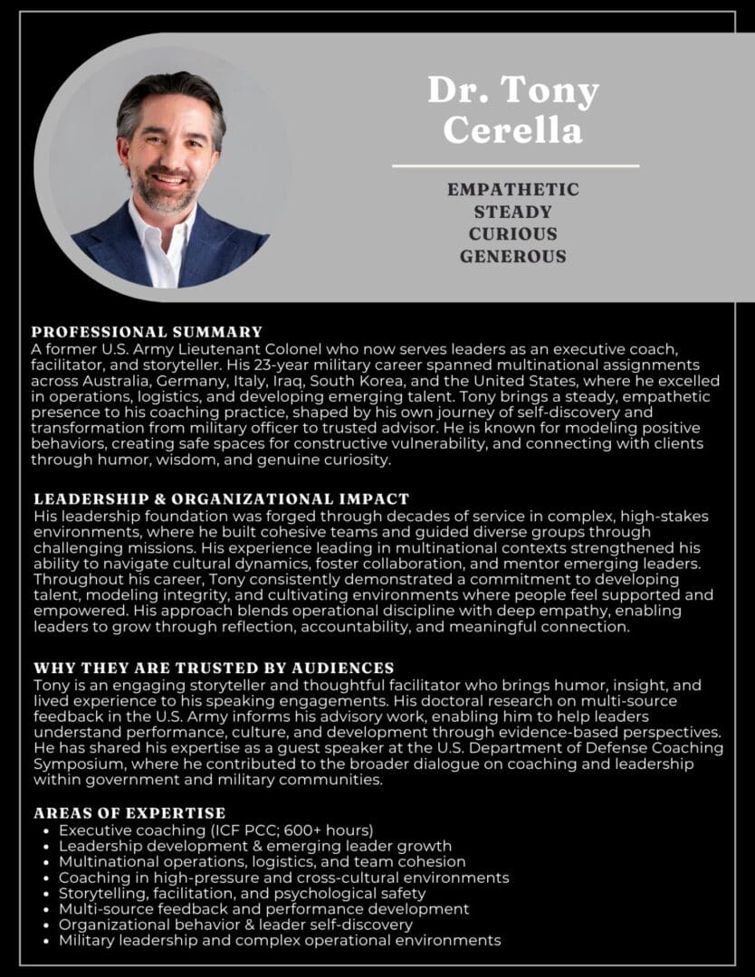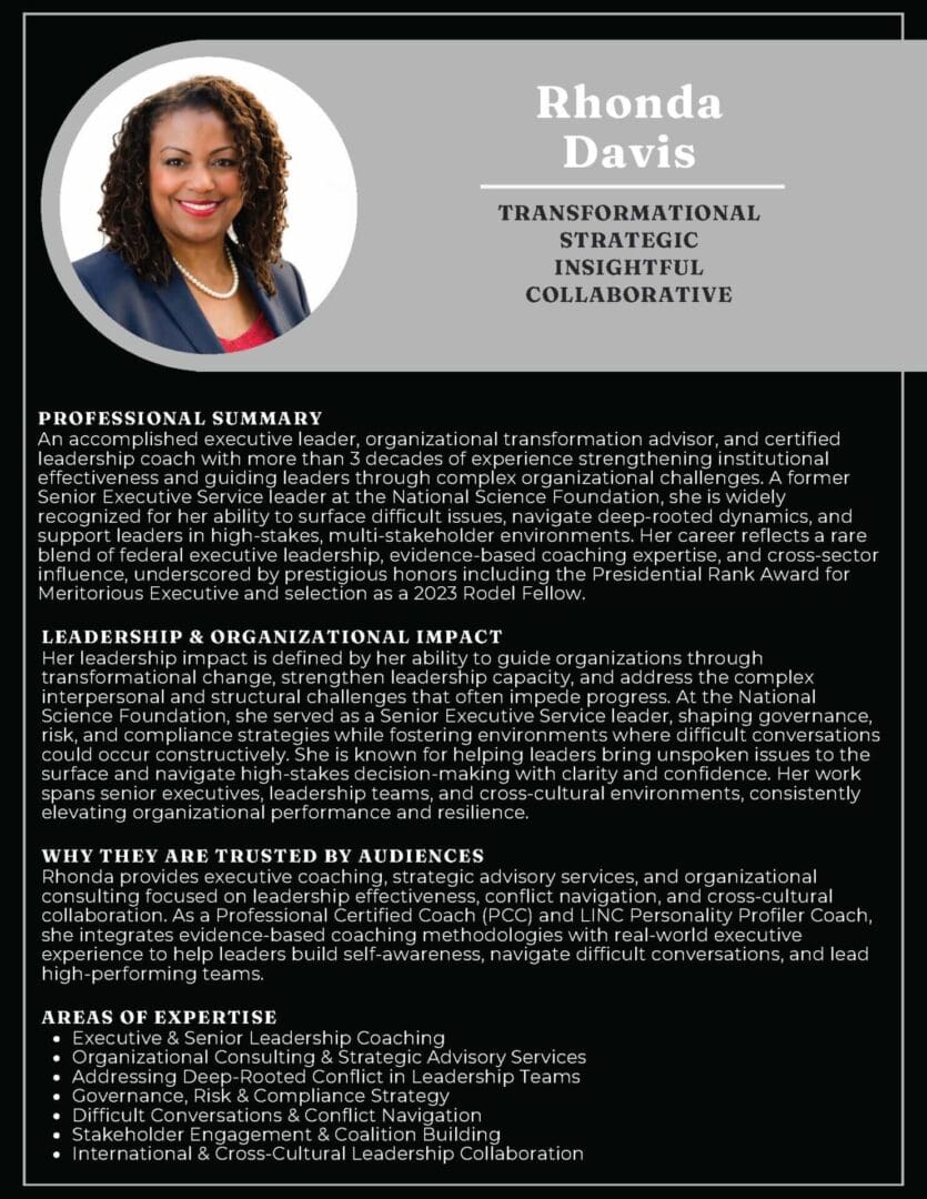 Driven by a passion for growth and a commitment to excellence, our coaches and consultants are here to guide you on your journey to success. Experience the transformation that comes from working with professionals who genuinely care about your progress, well-being, and organizational success.